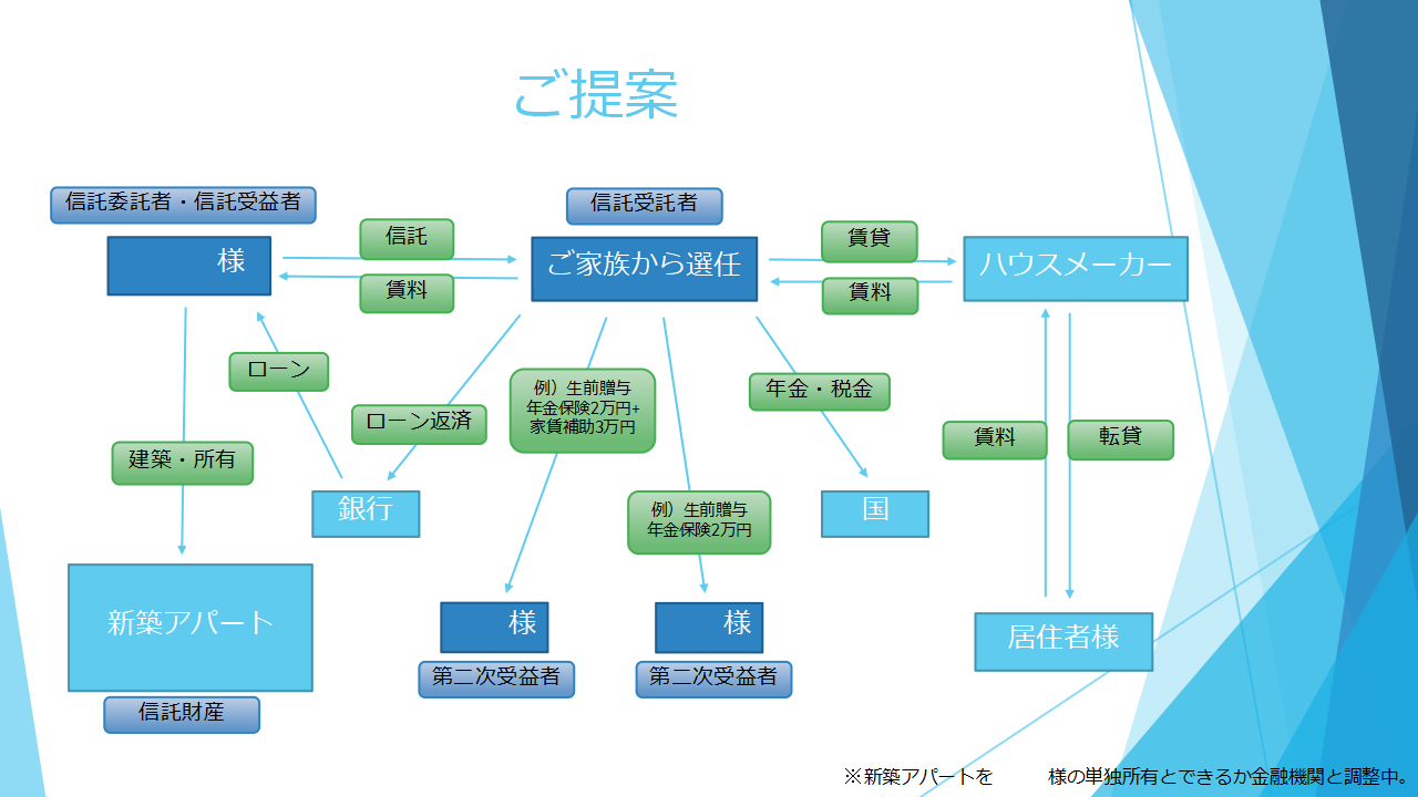 A. 民事信託は複雑な法的仕組みですが、当協会によるサポートを受ければ決して難しくありません。また、当協会は、法律面だけでなく、家族の状況や財産の種類によって、どんな対策が必要なのかを見極めたうえで、不動産や保険、助成金等を組み合わせ、個々人に最適な財産活用を提案しています。